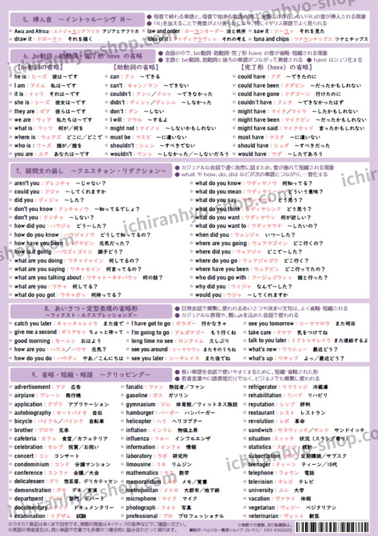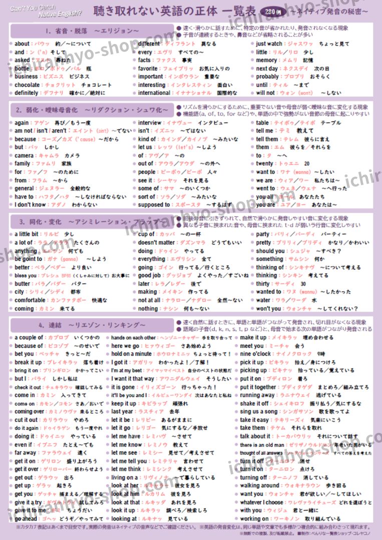 聴き取れない英語の正体 一覧表 280例 A4サイズ・両面カラー ~ネイティブ発音の秘密~